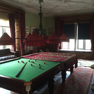 As you travel through the rooms the family lived in - you can see expensive design touches, wallpaper like that above, fancy electric light switches and rooms for every occasion including a Billiard room, a Piano Room, a study, living quarters and the library. Typical of high victorian design there is plenty of dark wood furniture dotted about - which considered by many these days as a no- no we adore, plenty of pattern and textiles and walls jam packed with taxidermy animals, photography and art.